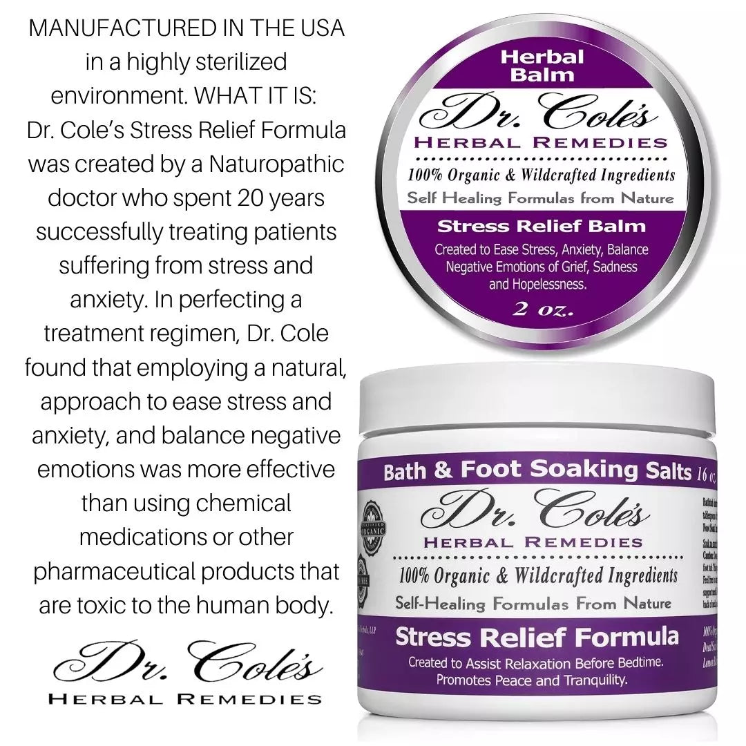 Created by a Naturopathic doctor who spent 20 years successfully treating patients suffering from stress and anxiety. In perfecting a treatment regimen, Dr. Cole found that employing a natural, approach to ease stress and anxiety, and balance negative emotions was more effective than using chemical medications or other pharmaceutical products that are toxic to the human body.